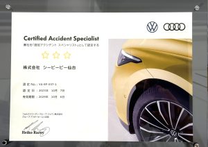 フォルクスワーゲン、アウディのメーカー認定鈑金塗装工場として認定されました。